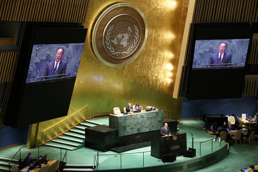 China's permanent representative to the United Nations (UN) Zhang Jun speaks during the UN General Assembly Special Emergency Session on Ukraine at the UN headquarters in New York, March 24, 2022. (Xinhua/Xie E)