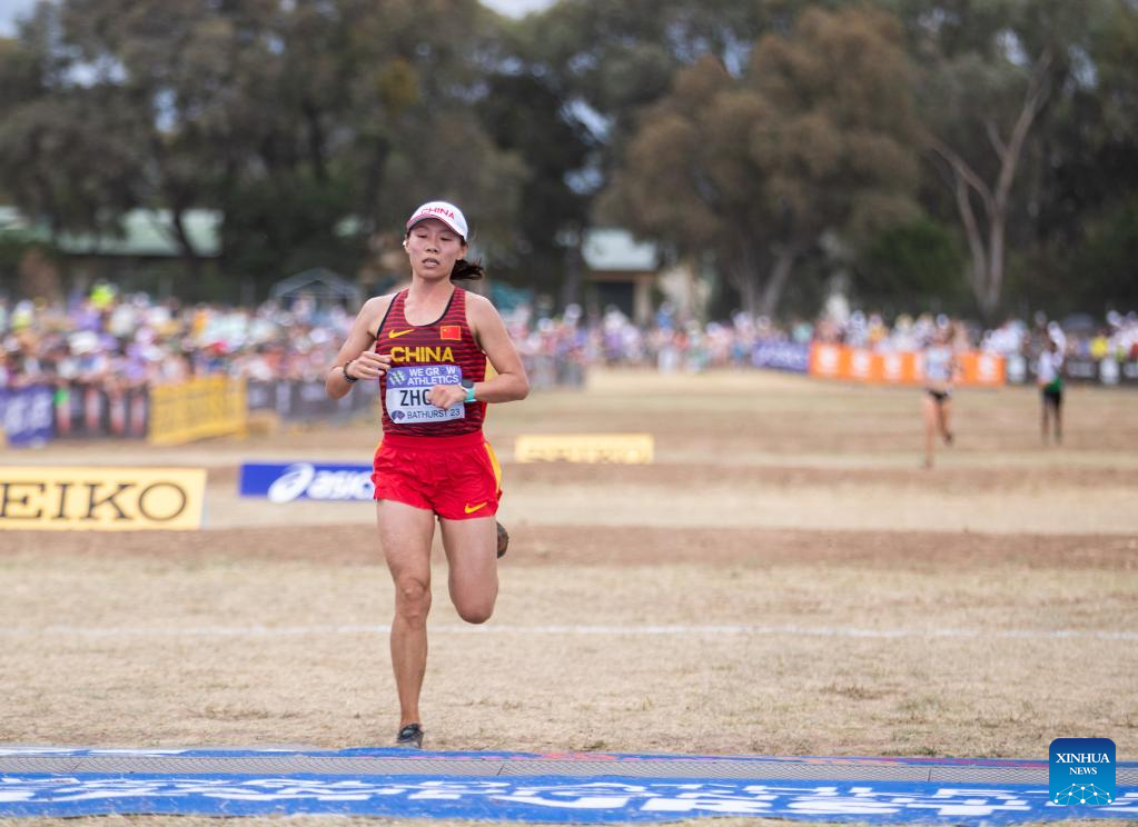 Zhou Xia of China competes during the women's 10km race at the World Athletics Cross Country Championships Bathurst 23 in Bathurst, New South Wales, Australia, on Feb. 18, 2023. (Photo by Hu Jingchen/Xinhua)