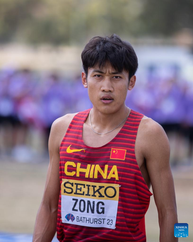 Zong Qinghua of Team China reacts before the mixed 4x2km relay at the World Athletics Cross Country Championships Bathurst 23 in Bathurst, New South Wales, Australia, on Feb. 18, 2023. (Photo by Hu Jingchen/Xinhua)