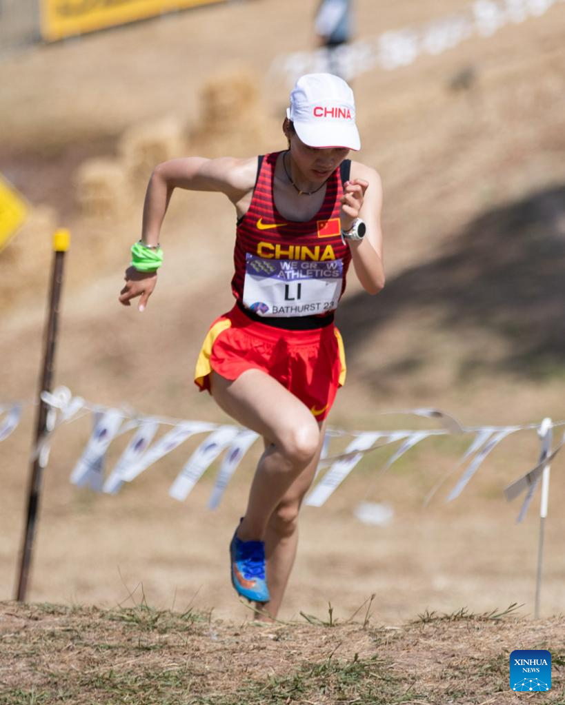Li Yingcui of Team China competes during the mixed 4x2km relay at the World Athletics Cross Country Championships Bathurst 23 in Bathurst, New South Wales, Australia, on Feb. 18, 2023. (Photo by Hu Jingchen/Xinhua)