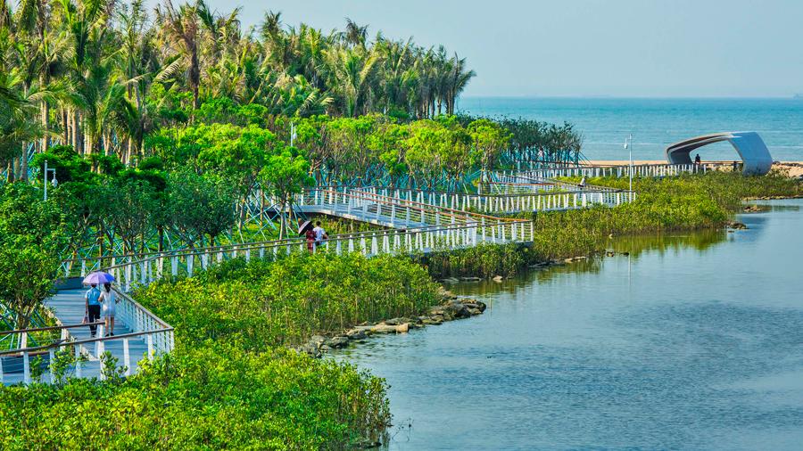 Visitors admire Wuyuanhe National Wetland Park, which boasts rich bio-diversity, in Haikou, south China's Hainan Province. (Photo/China Daily)