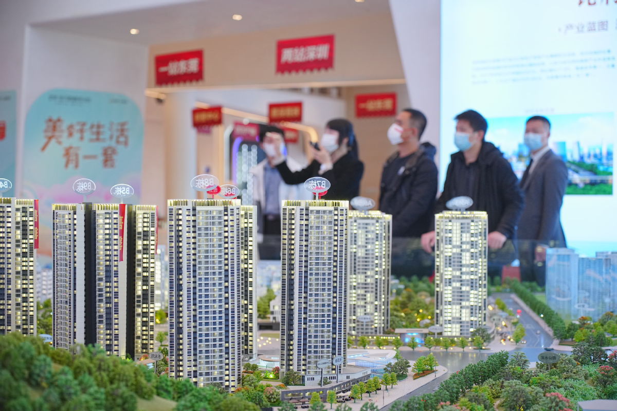 Potential homebuyers check out housing projects at a real estate agency in Huizhou, Guangdong province, in December. [PHOTO by ZHOU NAN/FOR CHINA DAILY]