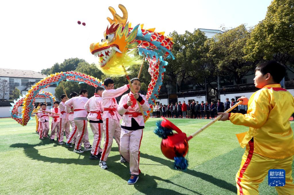 Photo taken on Feb. 20 shows children from a primary school performing a dragon dance to celebrate the Longtaitou Festival in Suzhou, east China’s Jiangsu Province. (Xinhua/Hang Xingwei)