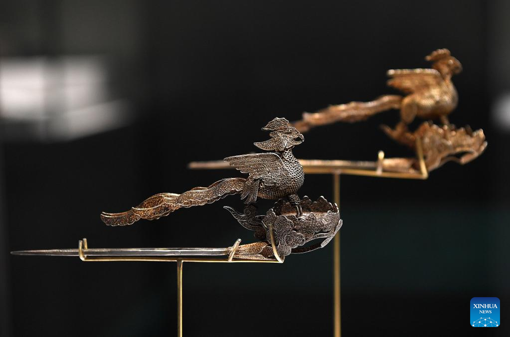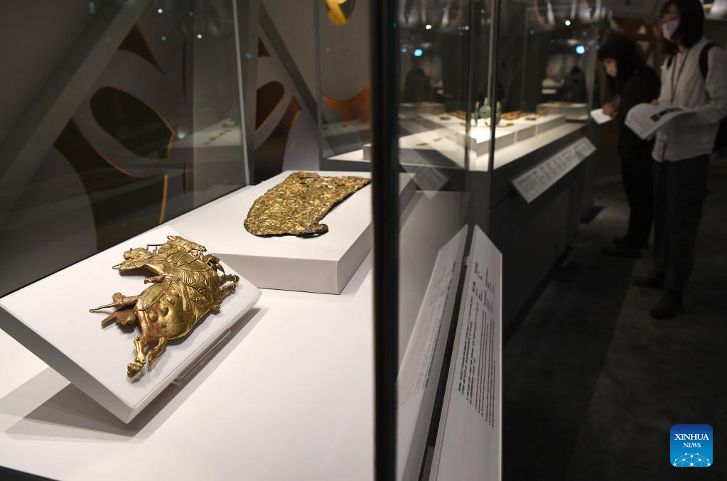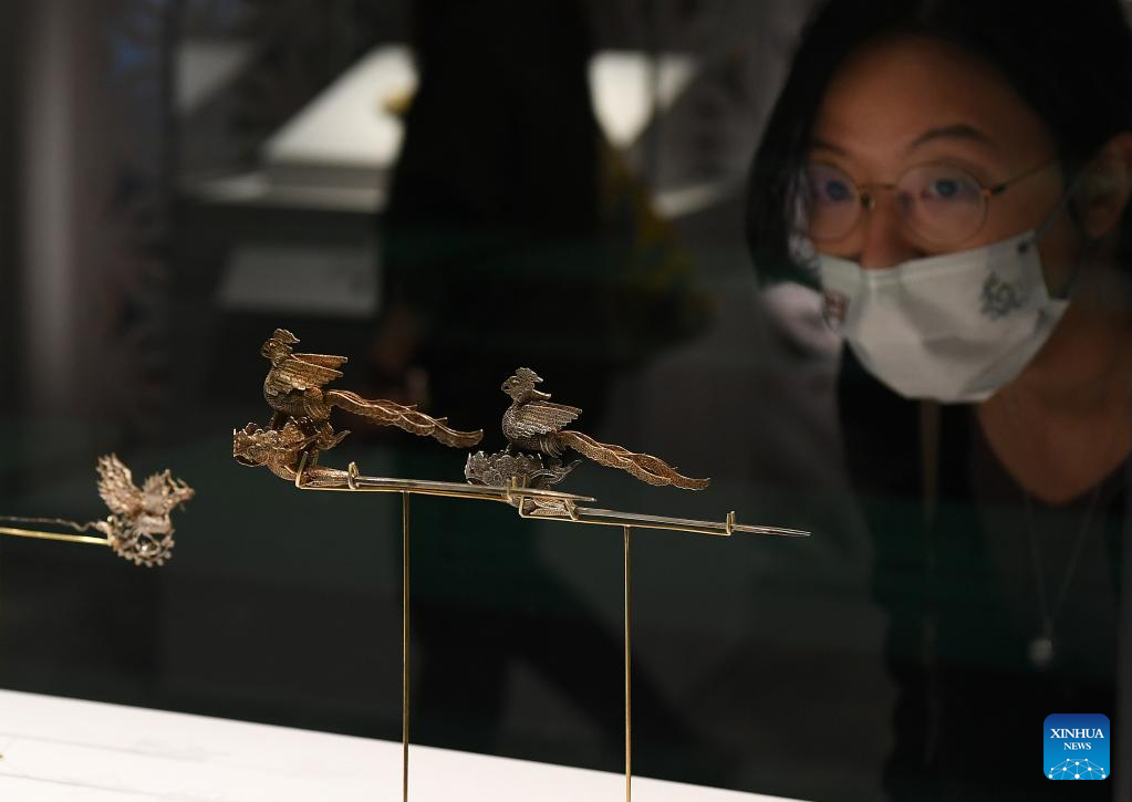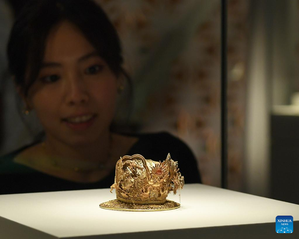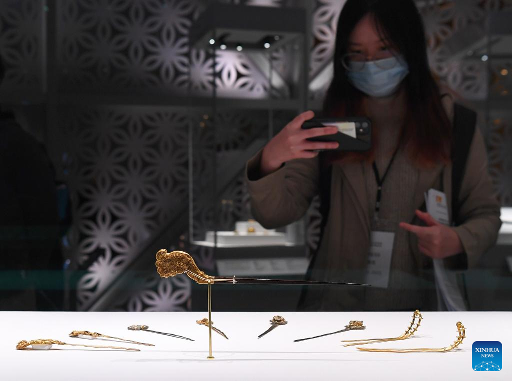 A special exhibition themed "Radiance: Ancient Gold from the Hong Kong Palace Museum Collection and the Mengdiexuan Collection" was unveiled here on Tuesday. A total of 220 sets of ancient Chinese gold objects are on display at the exhibition, which will be open to the public from Feb. 22 to Sept. 25.