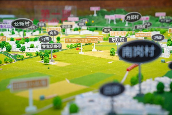 Photo shows a sand table model of a modern agricultural industrial park dedicated to cultivating Simiao rice in Zengcheng district of Guangzhou, south China's Guangdong Province. (Photo/Yangcheng Evening News)