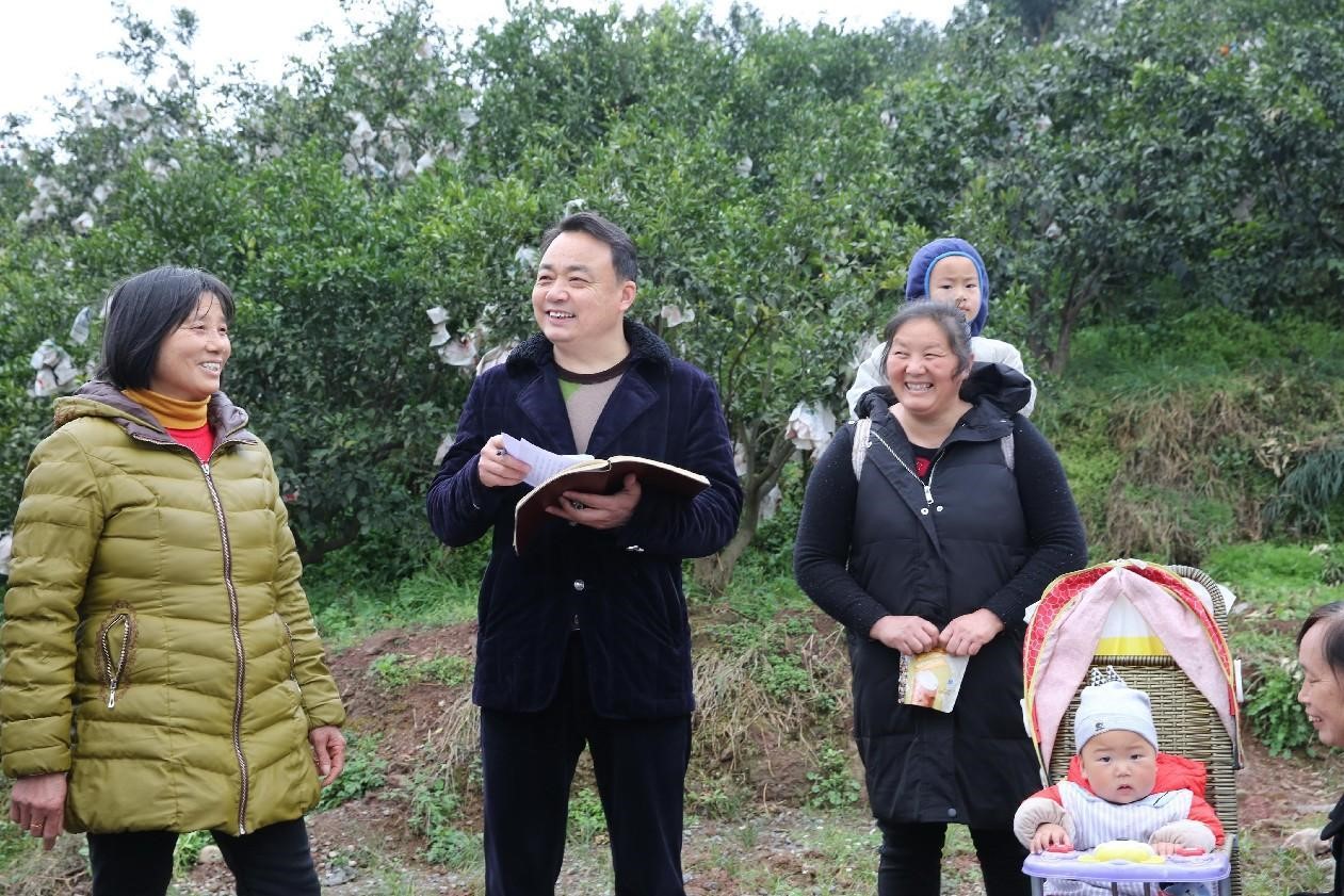 Luo Chaoyun (middle), a deputy to the National People's Congress, goes on an investigation tour in a village in Meishan, southwest China's Sichuan province. (People's Daily Online/Yao Yongliang)