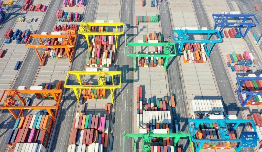 This aerial photo taken on Feb. 21, 2023 shows the full Internet of Things container terminal of Tianjin Port in north China's Tianjin.