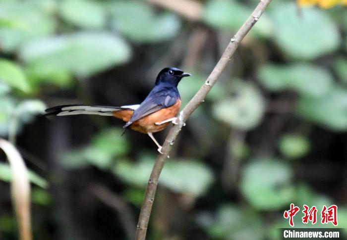 Photo shows a white-rumped shama in Nonggang village, Longzhou county, south China’s Guangxi Zhuang Autonomous Region. (Chinanews.com/Jiang Xuelin)