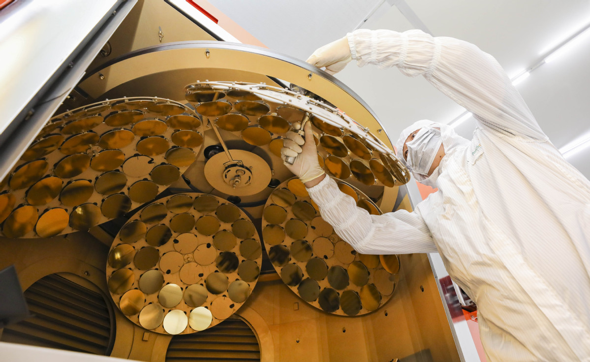 Microchips are produced at a factory in Huai'an, Jiangsu province. [ZHAO QIRUI/FOR CHINA DAILY]