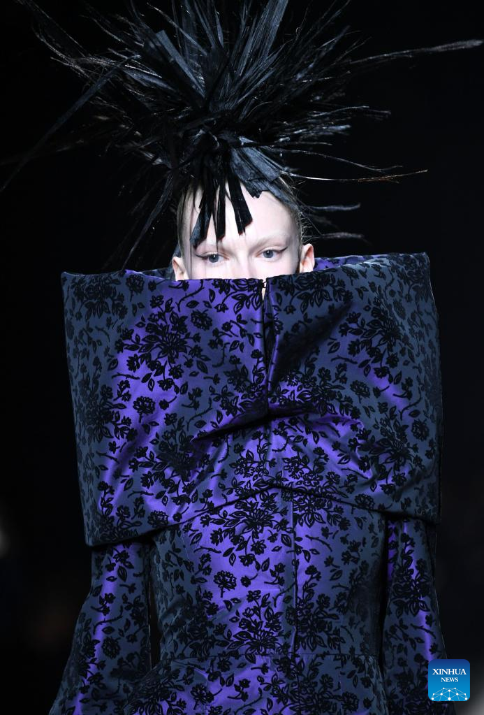 A model presents a creation from Moschino women's Fall/Winter 2023/2024 collection during Milan Fashion Week in Milan, Italy, on Feb. 23, 2023. (Xinhua/Jin Mamengni)