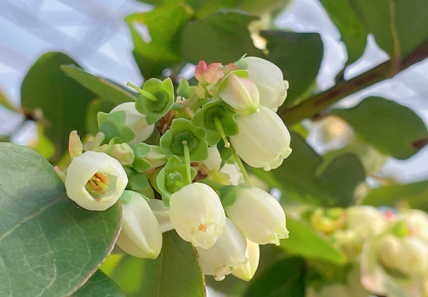 Photo shows blueberry flowers resembling white bells. (Photo/Meng Nannan)