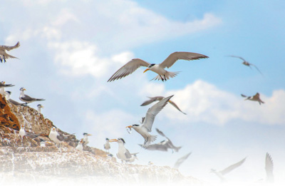 In recent years, research institutes have made various efforts to attract Chinese crested terns and greater crested terns to the Wuzhishan Islands and the Jiushan Islands by putting in place life-sized bird models and simulating bird sounds.