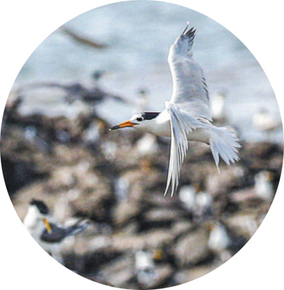 It was the first time that the bird species was spotted on the Wuzhishan Islands. Before that, ornithologists in Zhejiang Province had only occasionally found Chinese crested terns on the Jiushan Islands in Xiangshan county, Ningbo city of Zhejiang.