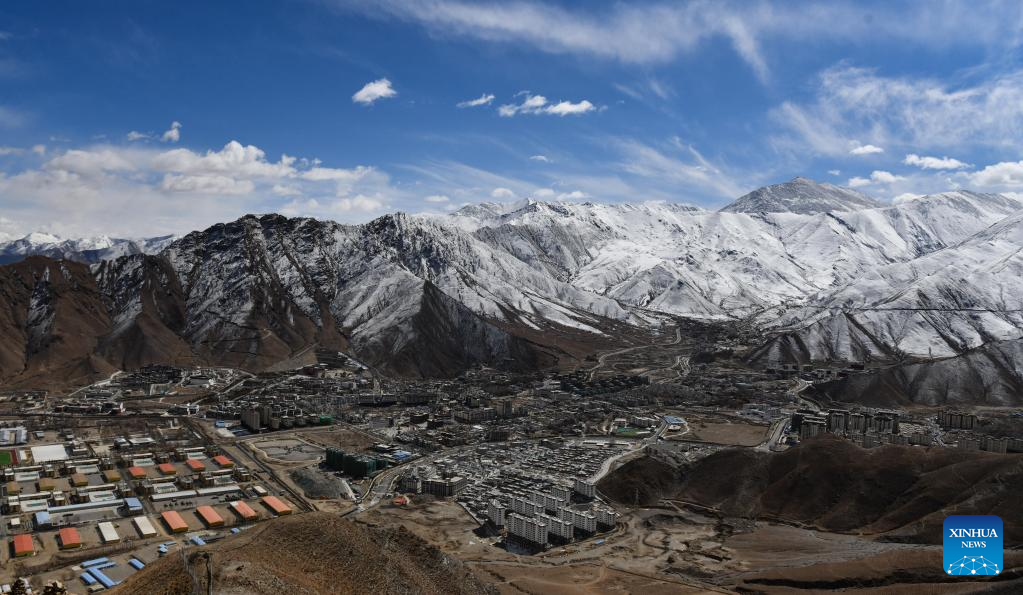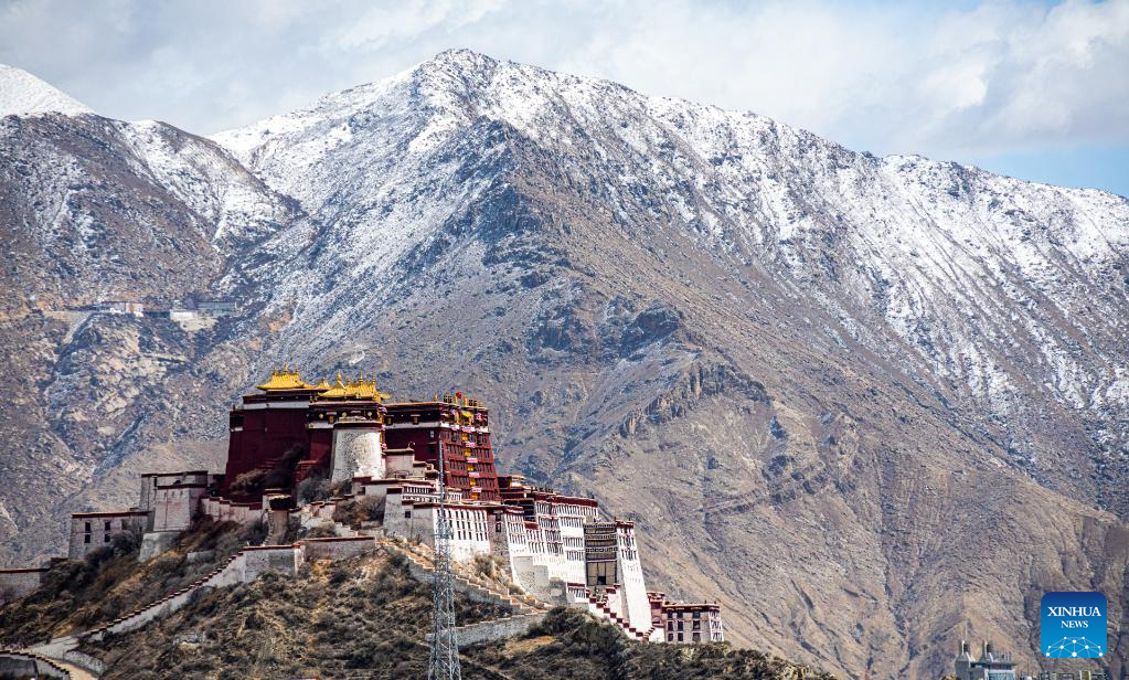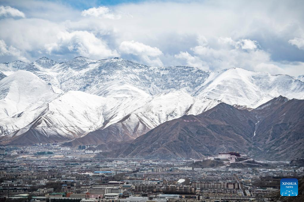 This photo taken on Feb. 24, 2023 show a view after a snowfall in Lhasa, southwest China's Tibet Autonomous Region. (Xinhua/Jigme Dorje)