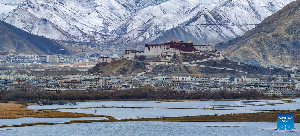 This photo taken on Feb. 24, 2023 show a view after a snowfall in Lhasa, southwest China's Tibet Autonomous Region. (Xinhua/Sun Fei)
