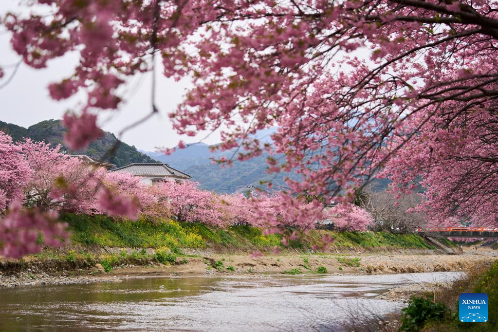 This photo taken on Feb. 24, 2023 shows early-blooming Kawazu cherry blossoms in Kawazu of Shizuoka Prefecture, Japan, Feb. 24, 2023. (Xinhua/Zhang Xiaoyu)