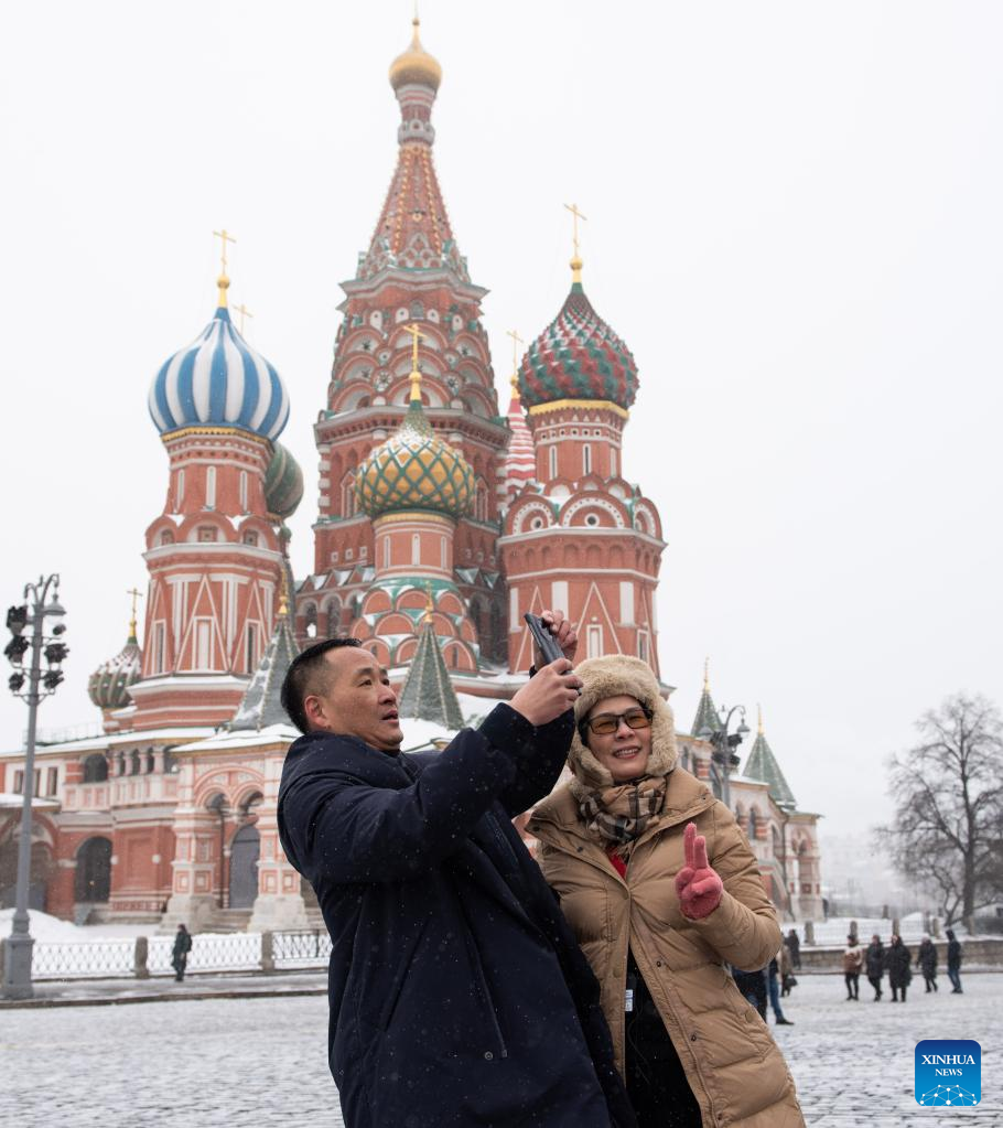 MOSCOW, Feb. 24 (Xinhua) -- Russia on Thursday greeted the first group of Chinese tourists with grand ceremony here, after three years of suspension due to the COVID-19 pandemic.