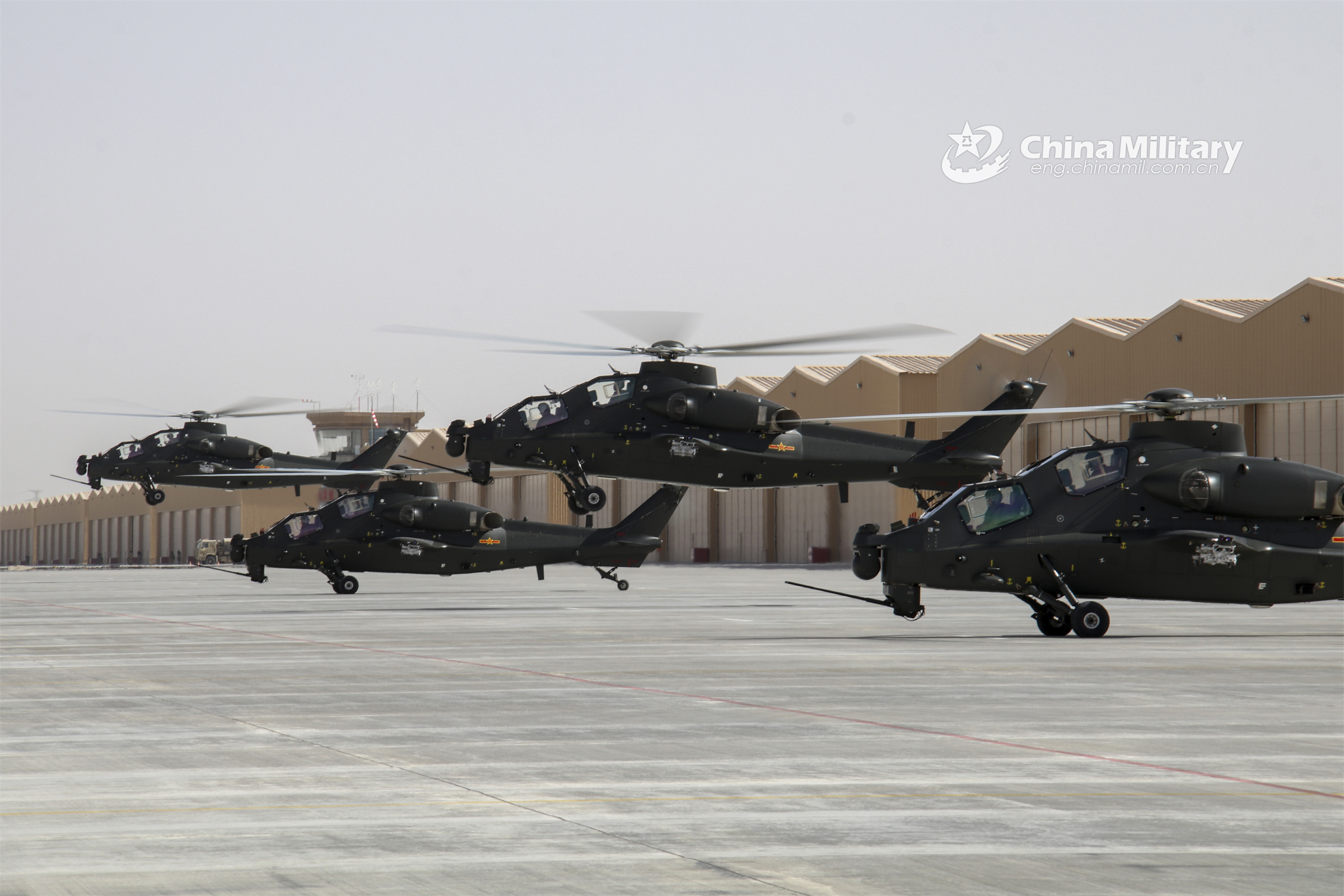 Helicopters attached to an army aviation brigade under the PLA 76th Group Army lift off for a flight training exercise in early February, 2023. (eng.chinamil.com.cn/Photo by Yang Mingfu)