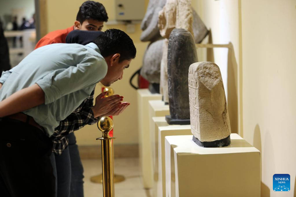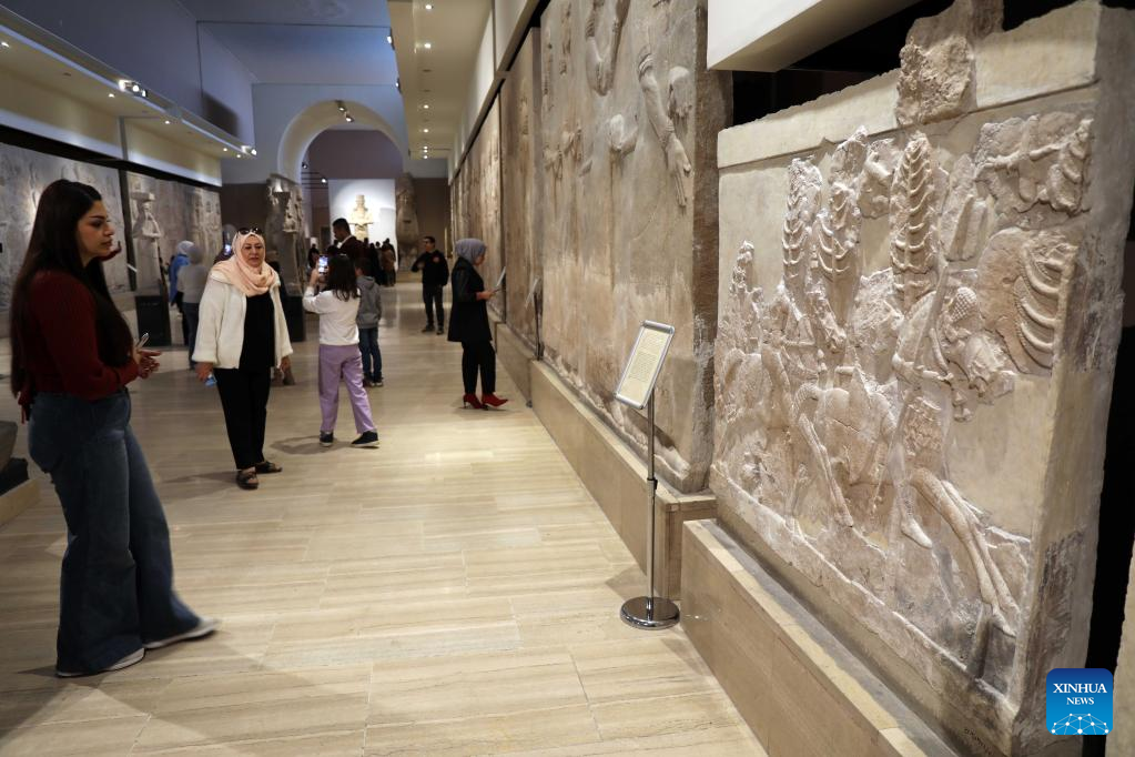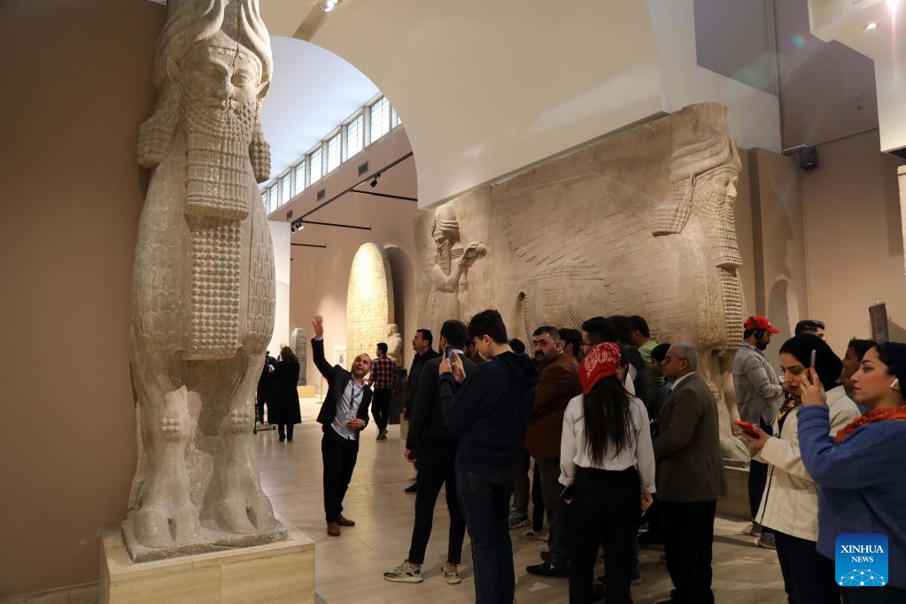People visit the Iraq Museum in Baghdad, Iraq, on Feb. 24, 2023. The Iraqi Ministry of Culture, Tourism and Antiquities decided to open the doors of the Iraq Museum to the public for free on Friday every week. (Xinhua/Khalil Dawood)
