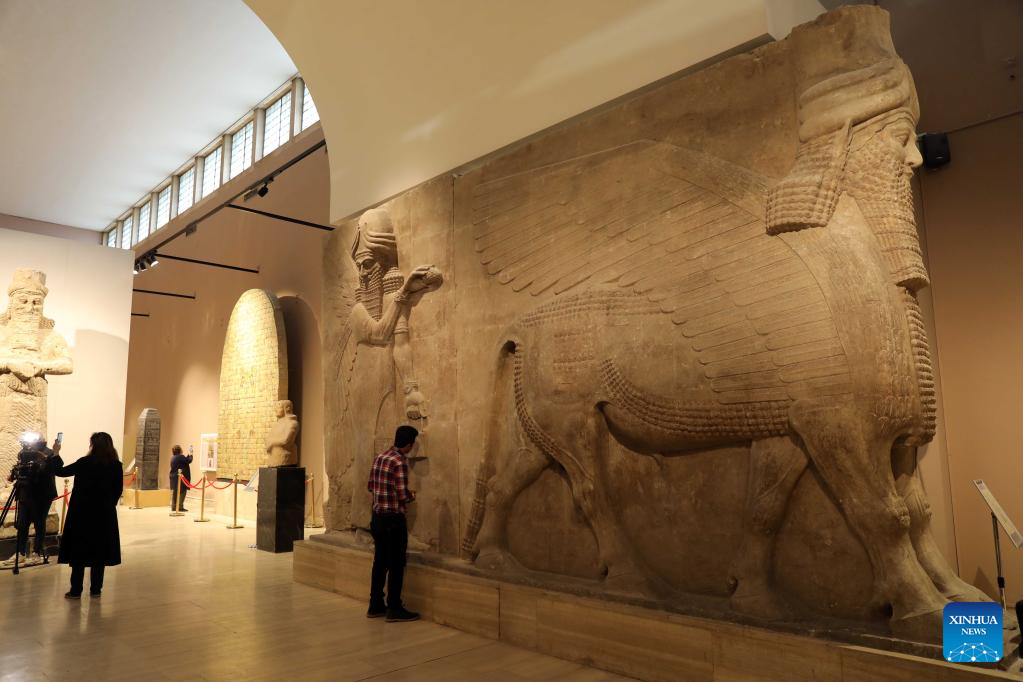 Photo taken on Feb. 24, 2023 shows exhibits at the Iraq Museum in Baghdad, Iraq. The Iraqi Ministry of Culture, Tourism and Antiquities decided to open the doors of the Iraq Museum to the public for free on Friday every week. (Xinhua/Khalil Dawood)