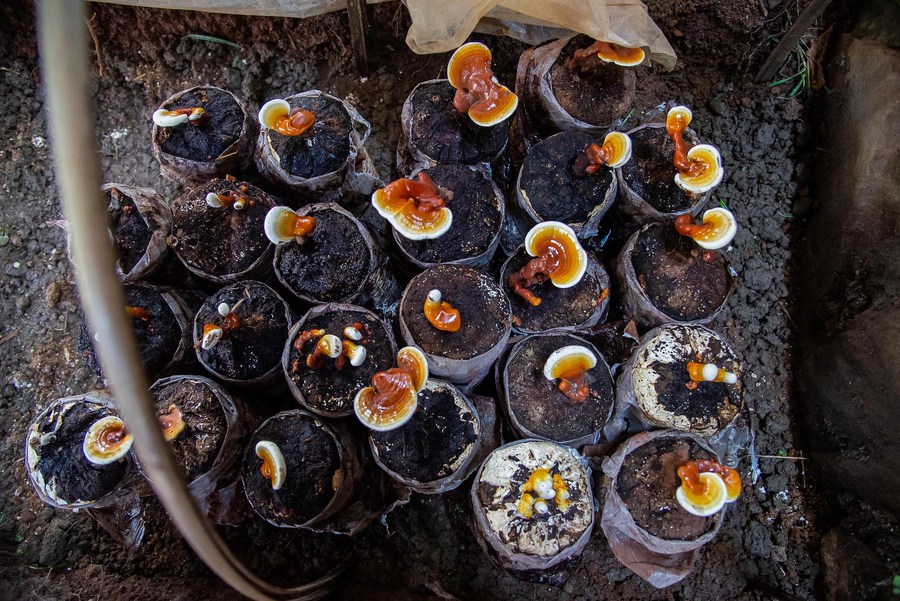 Photo taken on May 31, 2022, shows fungi cultivated by a non-governmental organization called "International NGO Centrolive" in Bangui, Central African Republic. (Xinhua/Luo Yu)