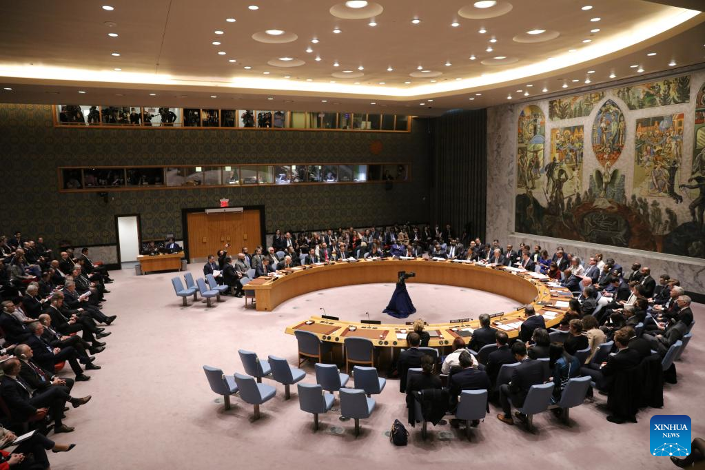 The UN Security Council holds a high-level meeting on Ukraine at the UN headquarters in New York, on Feb 24, 2023. [Photo/Xinhua]