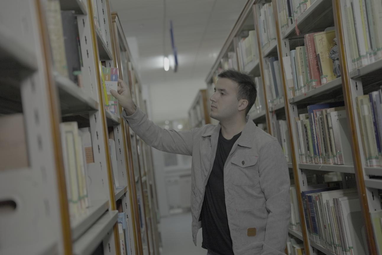Nozimov Sharifkhuja browses through books at the library of Nankai University. (Photo provided by the interviewee).