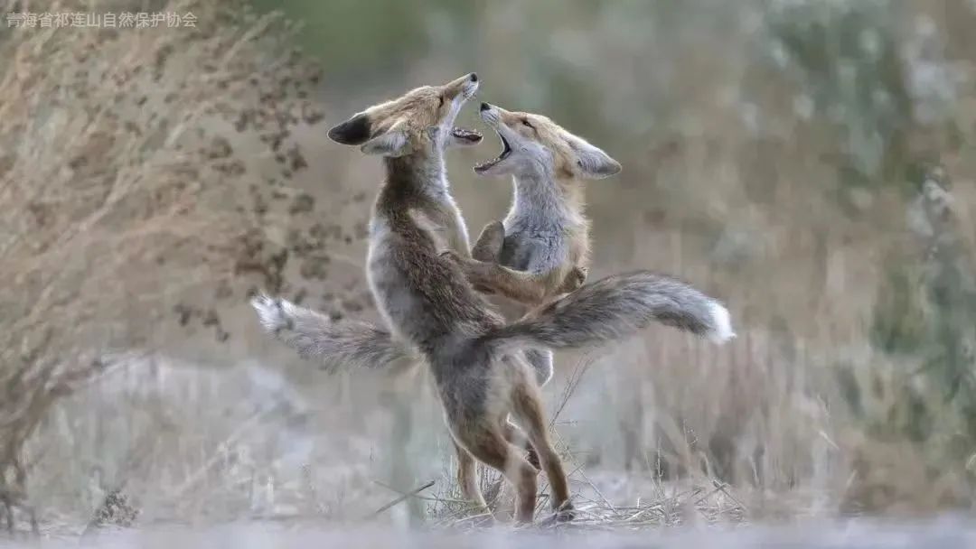 An image of red foxes taken by photographer Tong Haiyuan. (Photo courtesy of the Qinghai Qilian Mountains Nature Conservation Association)