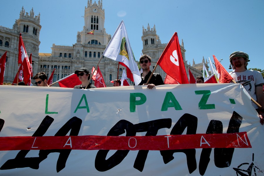 People take part in a protest in Madrid, Spain, June 26, 2022. (Photo by Juan Carlos Rojas/Xinhua)