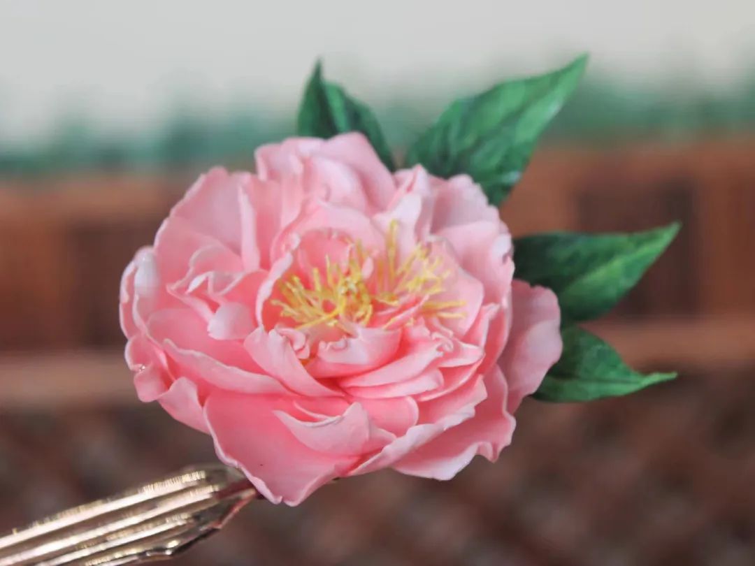 Photo shows a tongcao flower made by Wang Yunyu. (Photo/CCTV News)