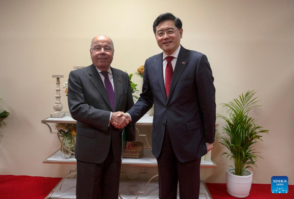 NEW DELHI, March 2 (Xinhua) -- Chinese Foreign Minister Qin Gang and his Brazilian counterpart Mauro Vieira met here on Thursday and exchanged views on the development of bilateral ties, with a focus on preparations for high level exchanges in the next stage.