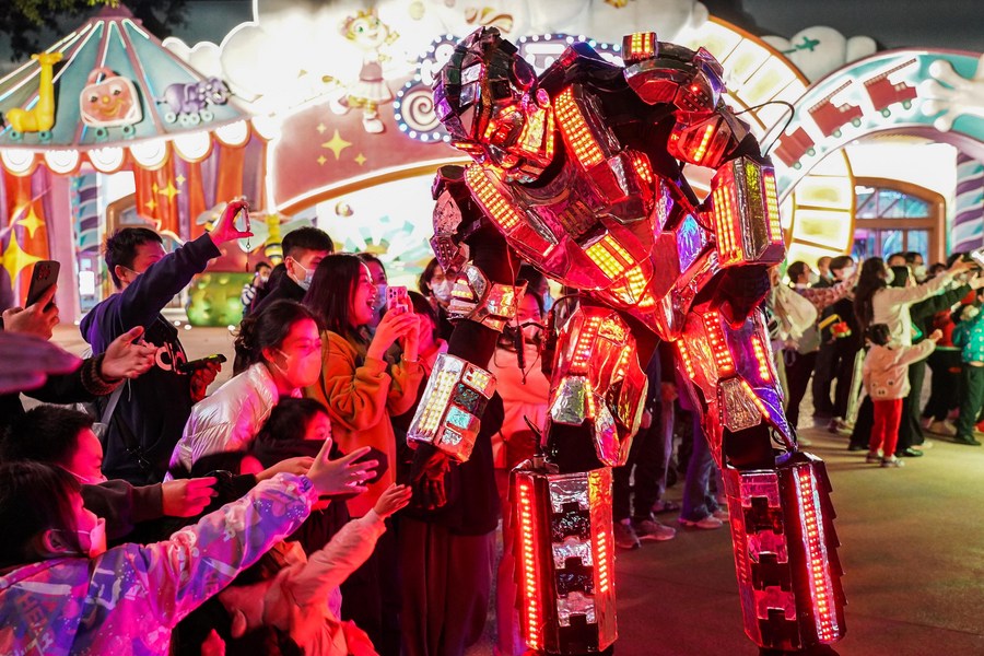 Tourists celebrate upcoming New Year at the Guangzhou Chimelong Tourist Resort in Guangzhou, south China's Guangdong Province, Dec. 31, 2022. (Xinhua/Liu Dawei)