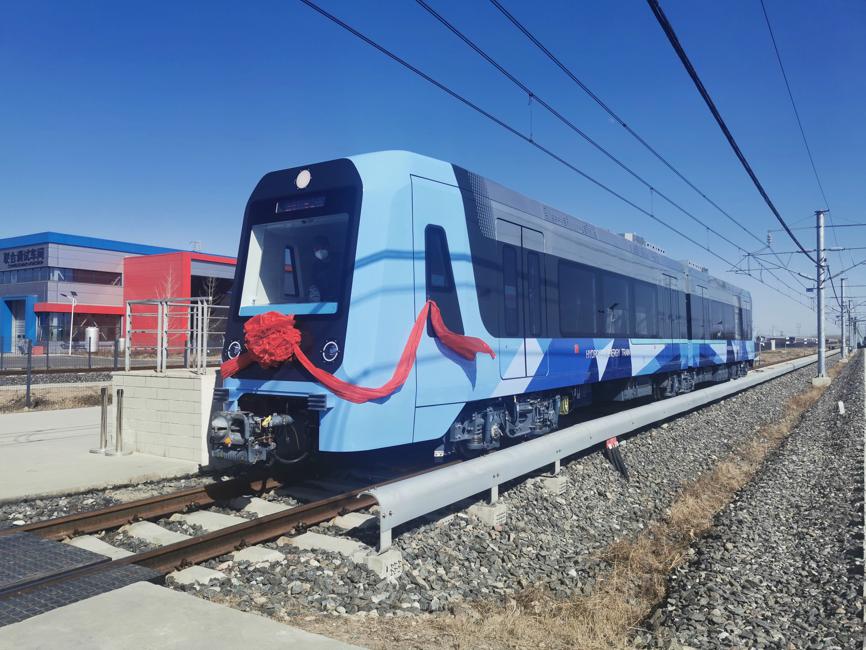 "Using hydrogen fuel cells as the main power source, the train can be charged fully in 15 minutes, for a driving range of no less than 100 kilometers," said Zhang Hong, deputy general manager of Beijing Jingtou Rail Transit Technology Research Institute Co, developer of the train.
