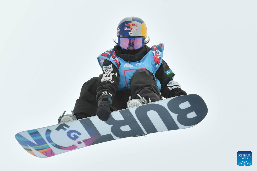 Ono Mitsuki of Japan competes during the women's halfpipe final at the FIS Snowboard World Championships in Bakuriani, Georgia, March 3, 2023. (Photo by Tamuna Kulumbegashvili/Xinhua)