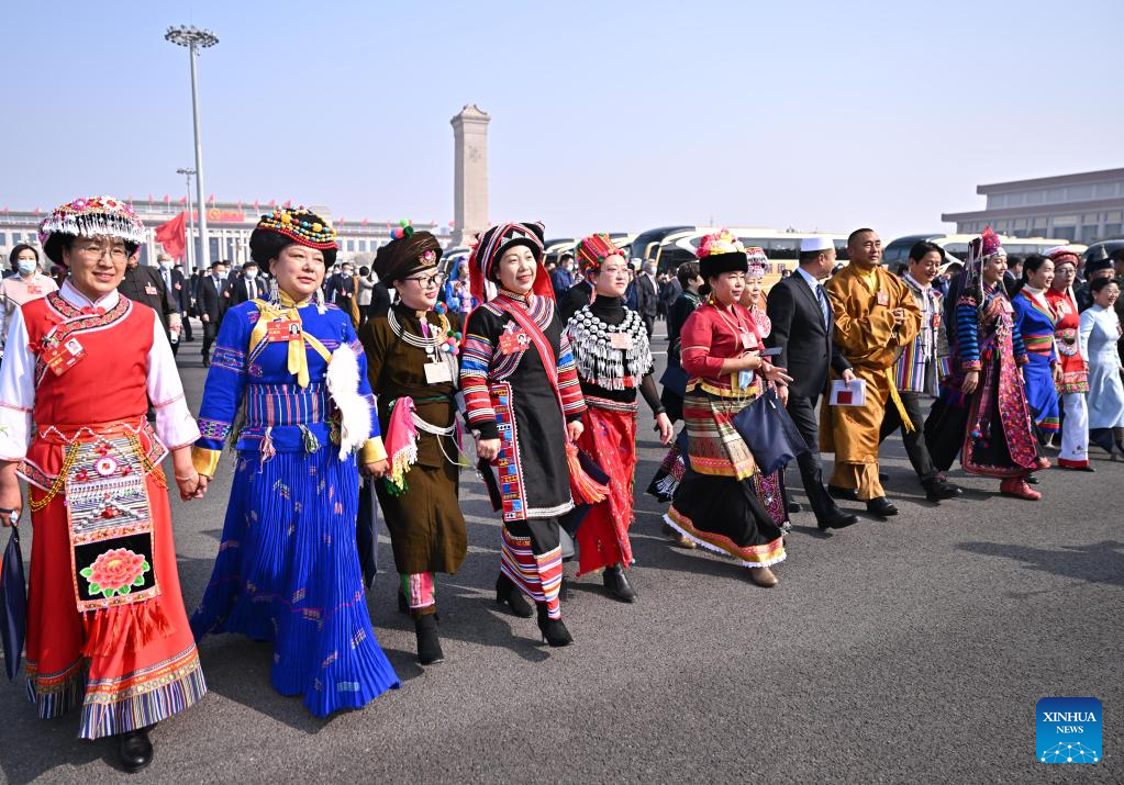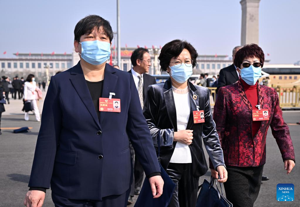 Members of the 14th National Committee of the Chinese People's Political Consultative Conference (CPPCC) walk towards the Great Hall of the People for the opening meeting of the first session of the 14th CPPCC National Committee in Beijing, capital of China, March 4, 2023. (Xinhua/Li Xin)