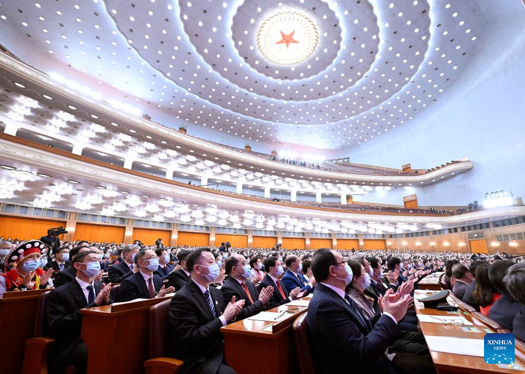 The opening meeting of the first session of the 14th National Committee of the Chinese People's Political Consultative Conference (CPPCC) is held at the Great Hall of the People in Beijing, capital of China, March 4, 2023. (Xinhua/Chen Yichen)