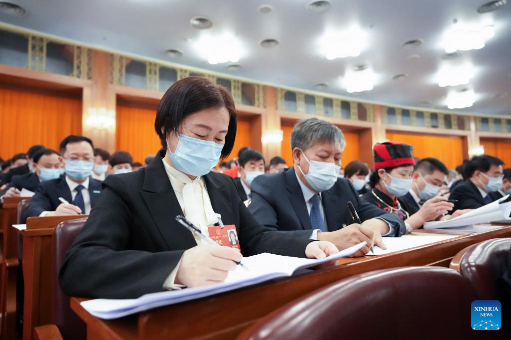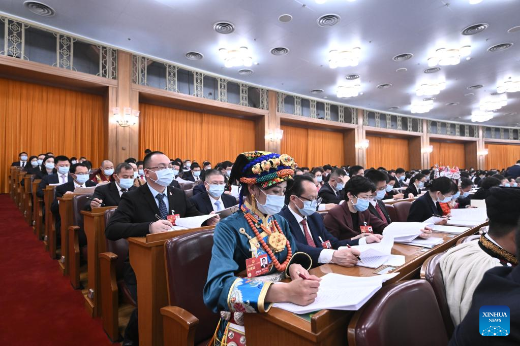 Deputies attend the opening meeting of the first session of the 14th National People's Congress (NPC) at the Great Hall of the People in Beijing, capital of China, March 5, 2023. (Xinhua/Yan Yan)