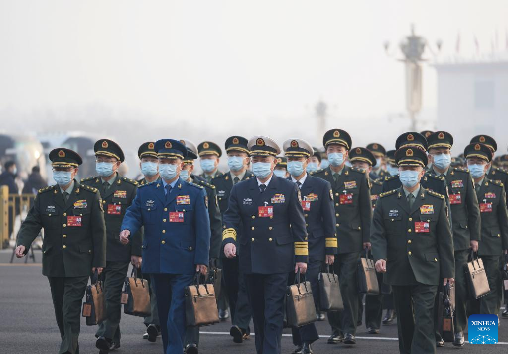 Deputies to the 14th National People's Congress (NPC) walk towards the Great Hall of the People for the opening meeting of the first session of the 14th NPC in Beijing, capital of China, March 5, 2023. The 14th NPC, China's national legislature, opened its first session Sunday morning here in Beijing. (Xinhua/Chen Yehua)