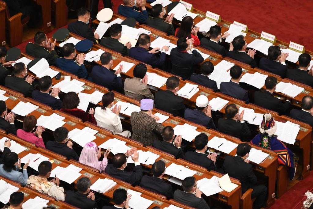 Members of the National Committee of the Chinese People's Political Consultative Conference (CPPCC) sit in on the opening meeting of the first session of the 14th National People's Congress (NPC) as non-voting participants at the Great Hall of the People in Beijing, capital of China, March 5, 2023. (Xinhua/Li Xin)