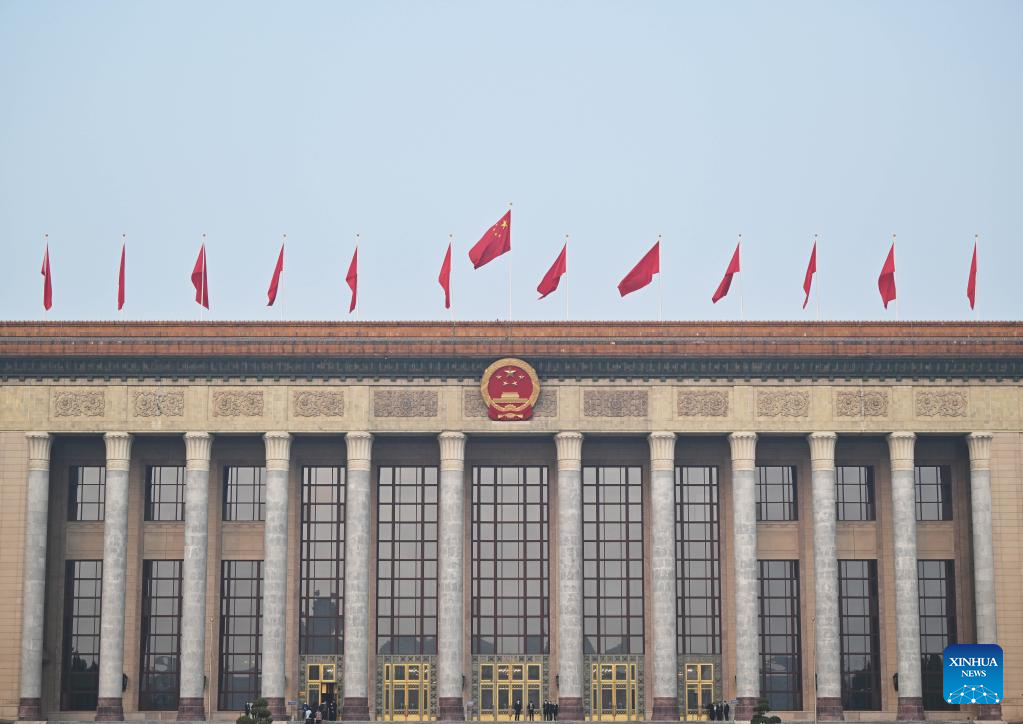 This photo taken on March 5, 2023 shows the Great Hall of the People in Beijing, capital of China. The 14th National People's Congress (NPC), China's national legislature, opened its first session Sunday morning here in Beijing. (Xinhua/Chen Yichen)