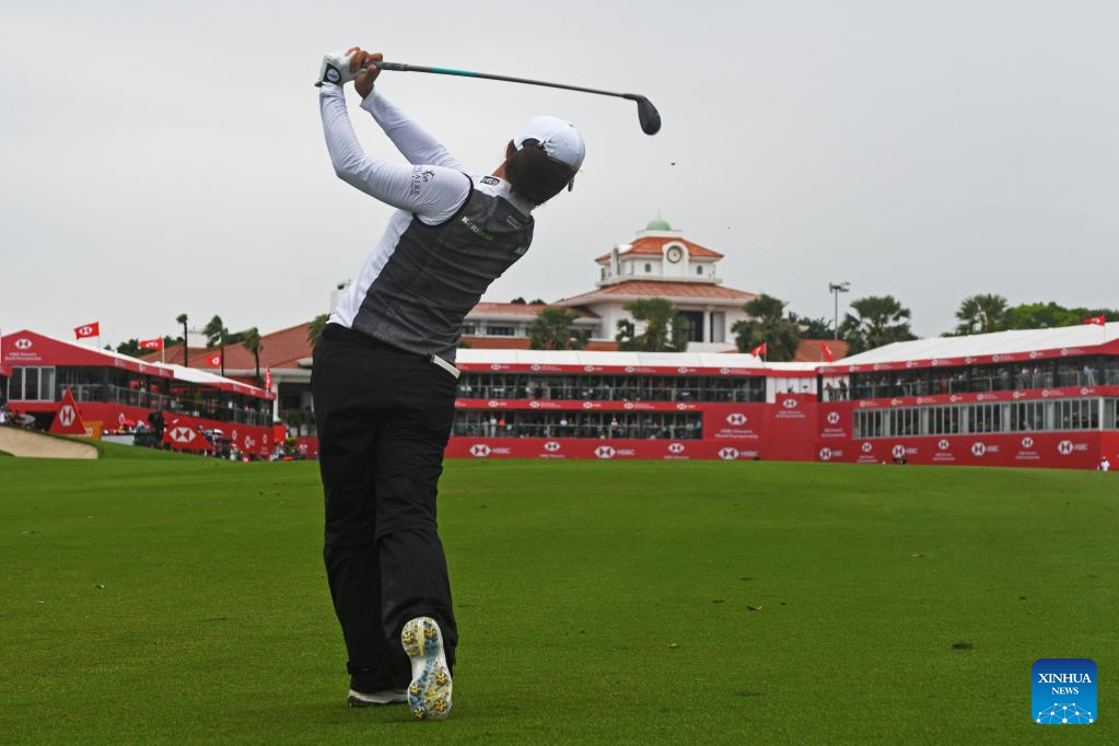Nelly Korda of the United States competes on the third day of the HSBC Women's World Championship held at Singapore's Sentosa Golf Club on March 4, 2023. (Photo by Then Chih Wey/Xinhua)