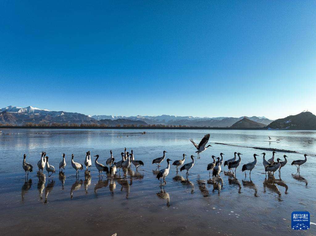 Listed as a bird species under national first-class protection, black-necked cranes mainly inhabit plateaus, meadows, marshes, reed swamps, lakeside meadow swamps and river valley swamps at altitudes of 2,500-5,000 meters. Lhunzhub County in Tibet is one of the major wintering habitat of black-necked cranes.