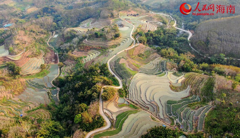 Photo shows terraced fields in Yahu village, Maoyang township, Wuzhishan city, south China’s Hainan Province. (People’s Daily Online/Fu Wuping)