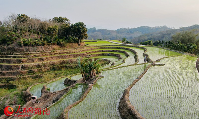 The spring air refreshed the terraced fields in Yahu village, Maoyang township, Wuzhishan city, south China’s Hainan Province. Rice seedlings have already been transplanted in Yahu’s terraced field, creating waves of greenness stretching across paddy fields.