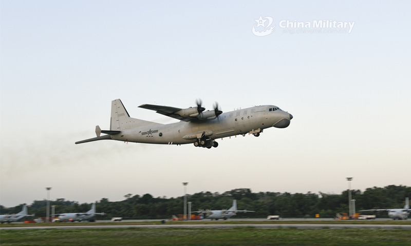 An anti-submarine patrol aircraft attached to a naval aviation regiment under the PLA Southern Theater Command takes off for a recent training exercise, which aims to hone the skills and combat capabilities of the troops. (eng.chinamil.com.cn/Photo by Qin Qianjiang)