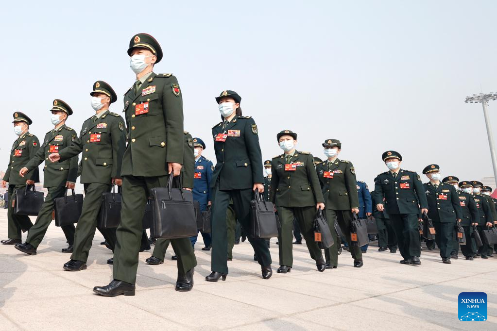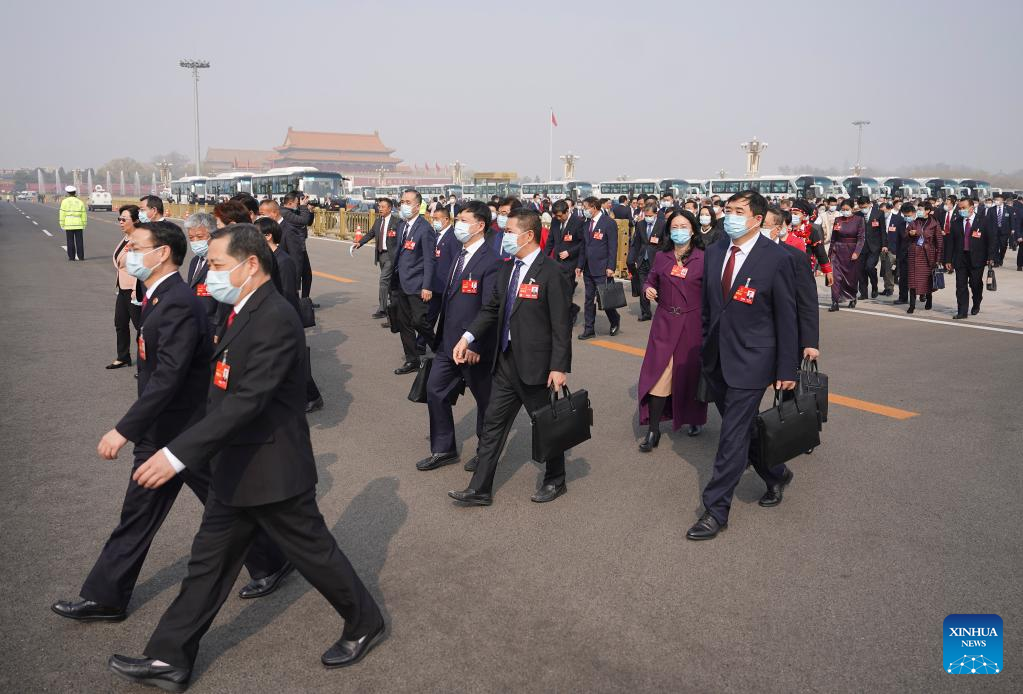 Deputies to the 14th National People's Congress (NPC) walk towards the Great Hall of the People for the second plenary meeting of the first session of the 14th NPC in Beijing, capital of China, March 7, 2023. (Xinhua/Cai Yang)