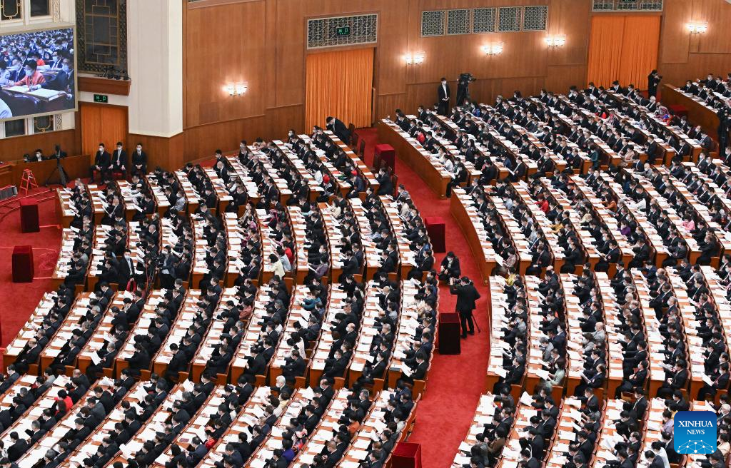 Deputies to the 14th National People's Congress (NPC) attend the second plenary meeting of the first session of the 14th NPC at the Great Hall of the People in Beijing, capital of China, March 7, 2023. (Xinhua/Liu Jinhai)