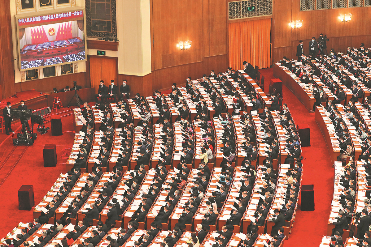 Deputies participate in the second plenary meeting of the first session of the 14th National People's Congress in Beijing on Tuesday. WANG ZHUANGFEI/CHINA DAILY