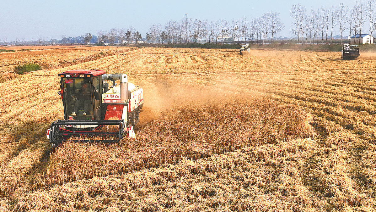Seawater rice is harvested at a farm in Lianyungang in November. GENG YUHE/FOR CHINA DAILY