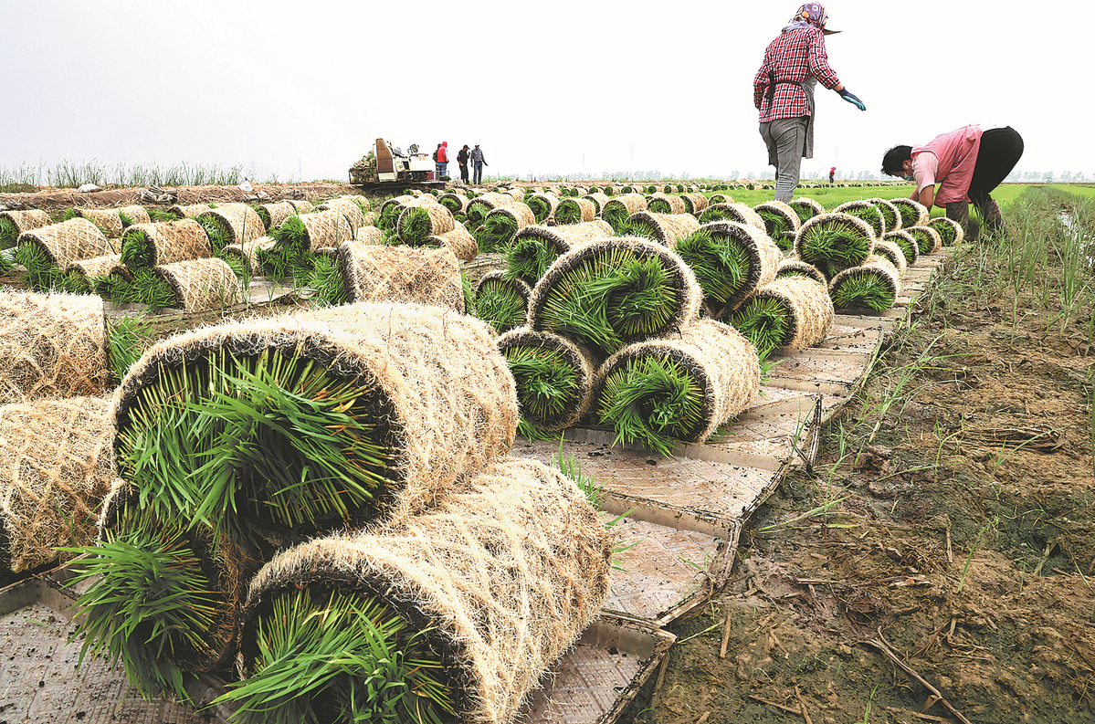 Farmers prepare to plant rice in Lianyungang in June. GENG YUHE/FOR CHINA DAILY
